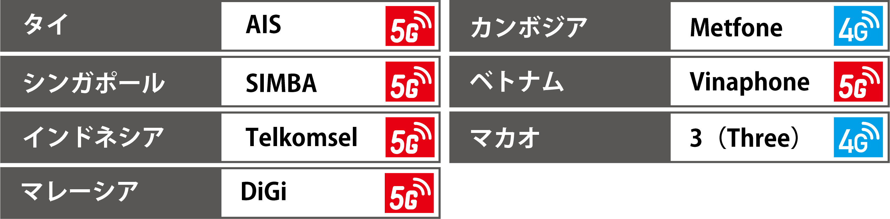 出張前に日本で準備しておけば、タイに到着してすぐ使えてさらに安心です。現在、以下の2種類が販売中です。