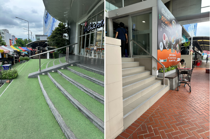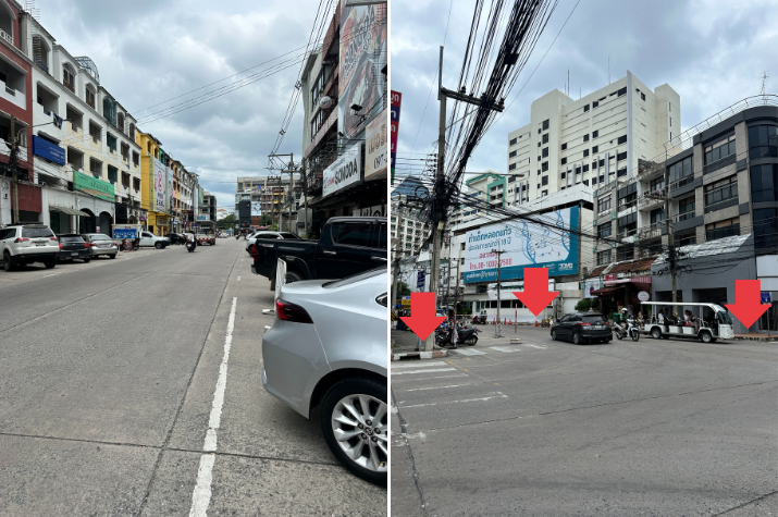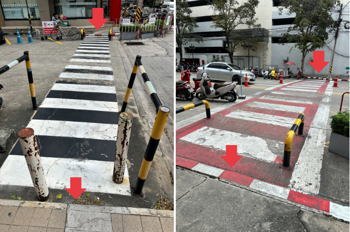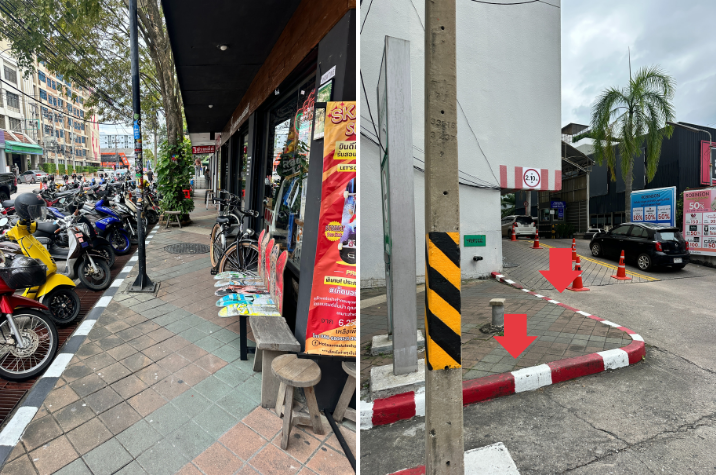 そこで、今回はシラチャのロビンソンからベリーモバイルショップの歩道をチェックして、どこがベビーカーが通れる道か調査してみました。