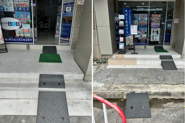 そして、ベリーモバイルシラチャ店では今までスロープを設置していなかったため、ベビーカーをご利用のお客様には入退店時にベビーカーを持ち上げていただく必要がありました。特に、お子様連れのお母様がお一人で来店される際には、ご不便をおかけしていることがちらほら…