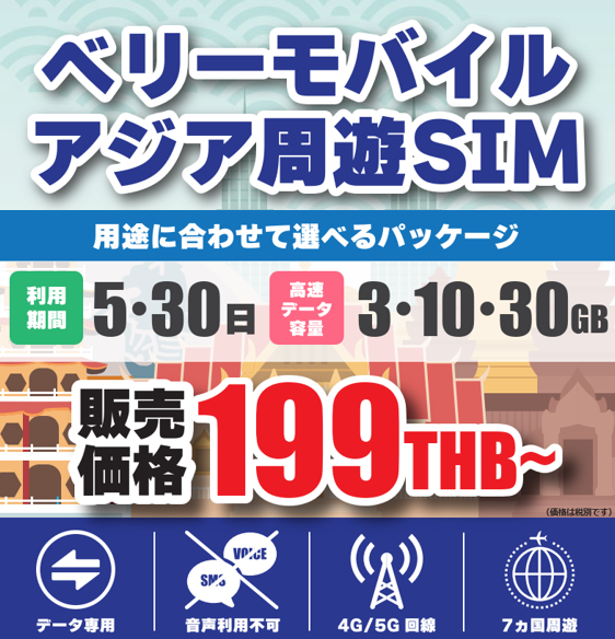旅行等の短期滞在向けSIM【ベリーモバイルアジア周遊SIM】