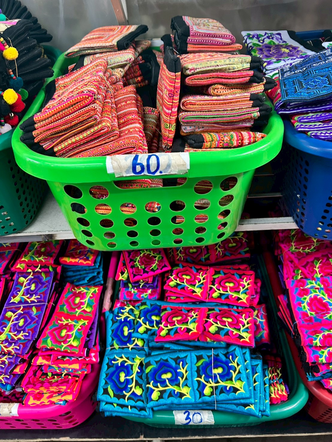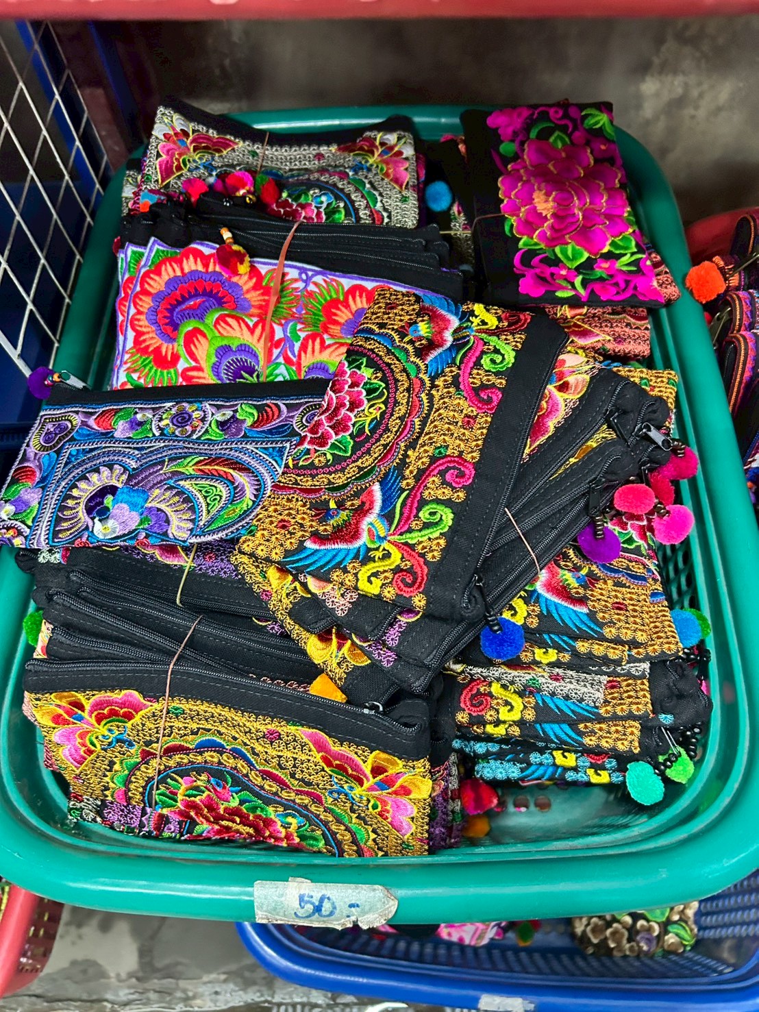 こちらはモン族衣装の布を使ったポーチやバッグなどが販売している市場です。