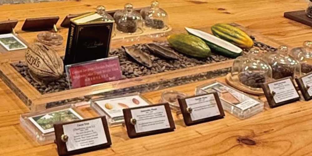 店内に入るとふわっと甘い香りが漂い、まるでチョコレート工場の映画のワンシーンのよう。入ってすぐのスペースには、チョコレートの製造工程やカカオの香りの体験コーナーもあります。