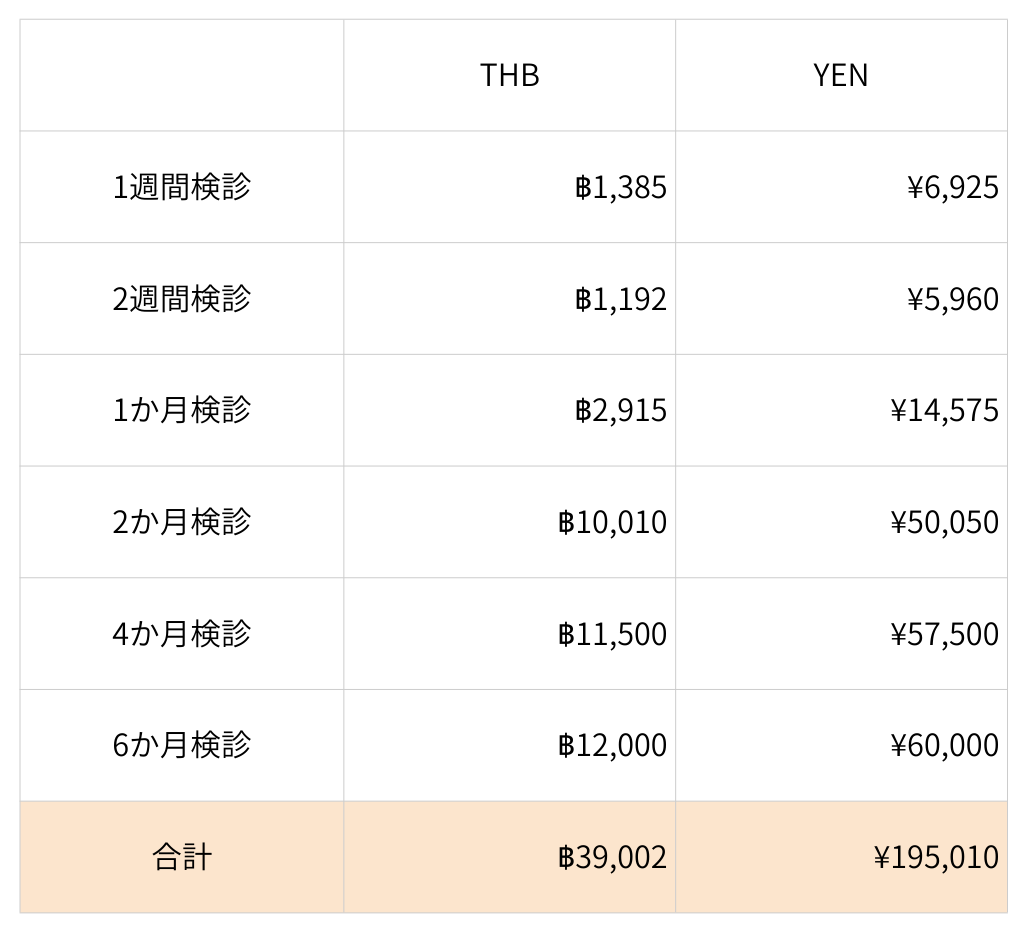 我が家がサミティベート・シラチャ病院で受けた、出産後〜6か月までの子どもの検診費用の合計はこちらです。