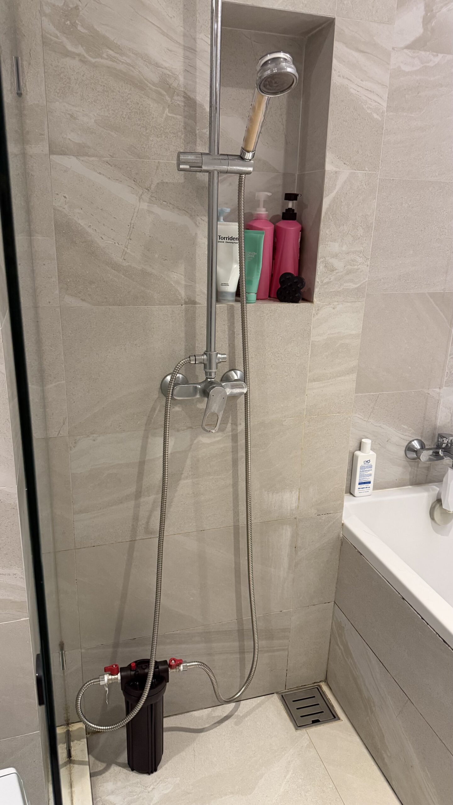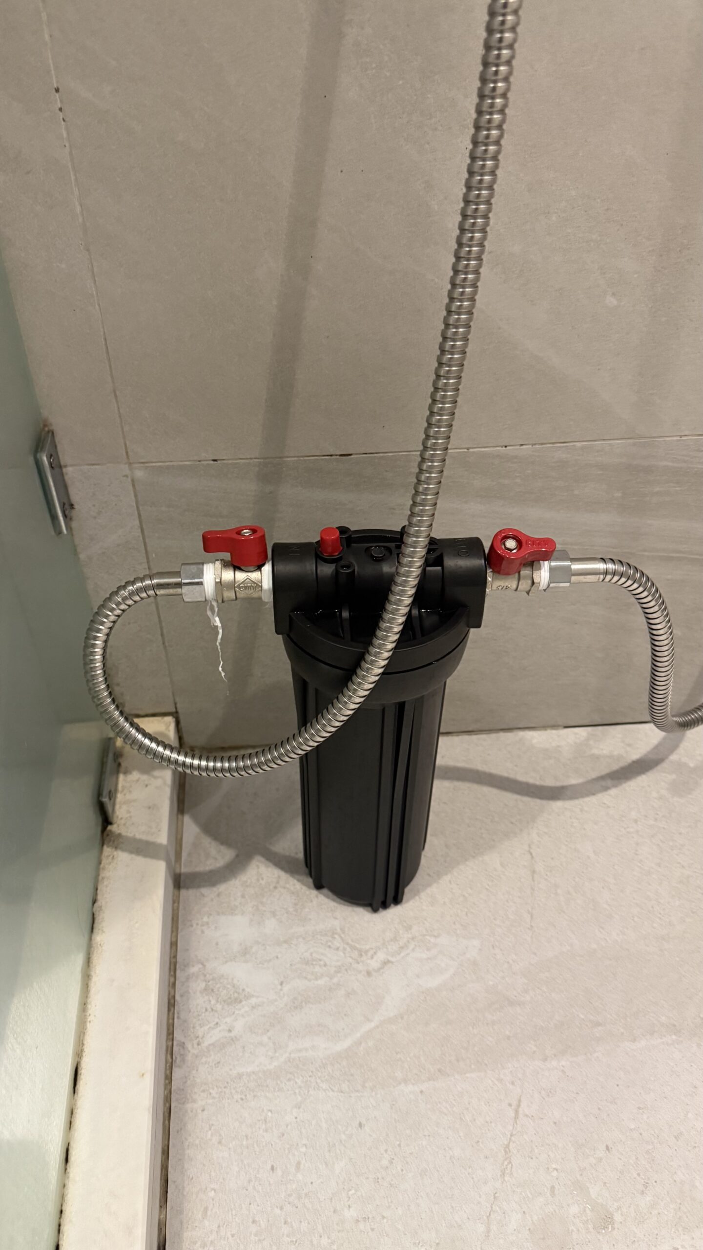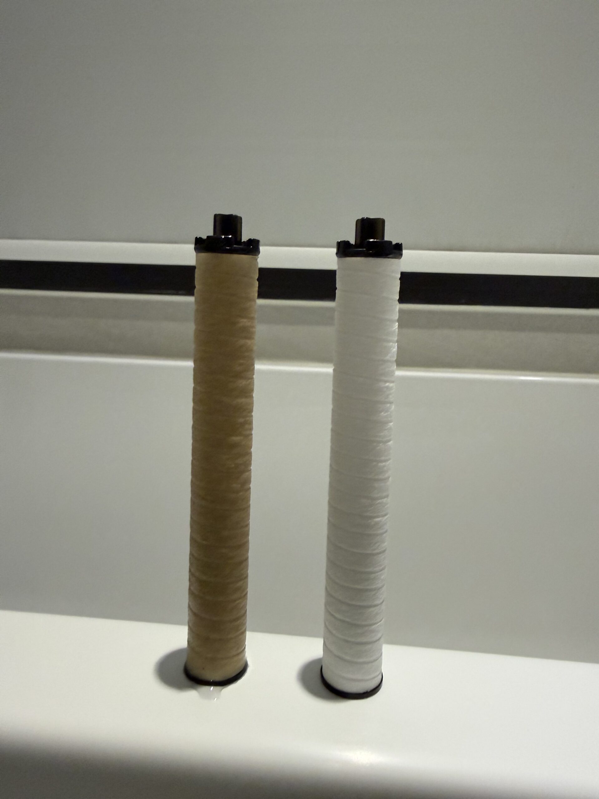 を追加で導入し、2段階でシャワーの水をろ過する形に変更しました。