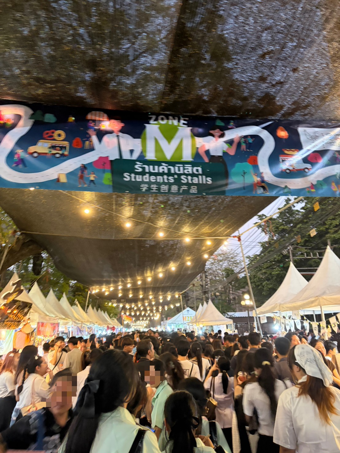 定番の焼き鳥(ガイヤーン)や串焼き(ムーピン)はもちろん、チェンマイなど地方の特産品や、学生たちが工夫を凝らした食べ物や飲み物なども売られています。