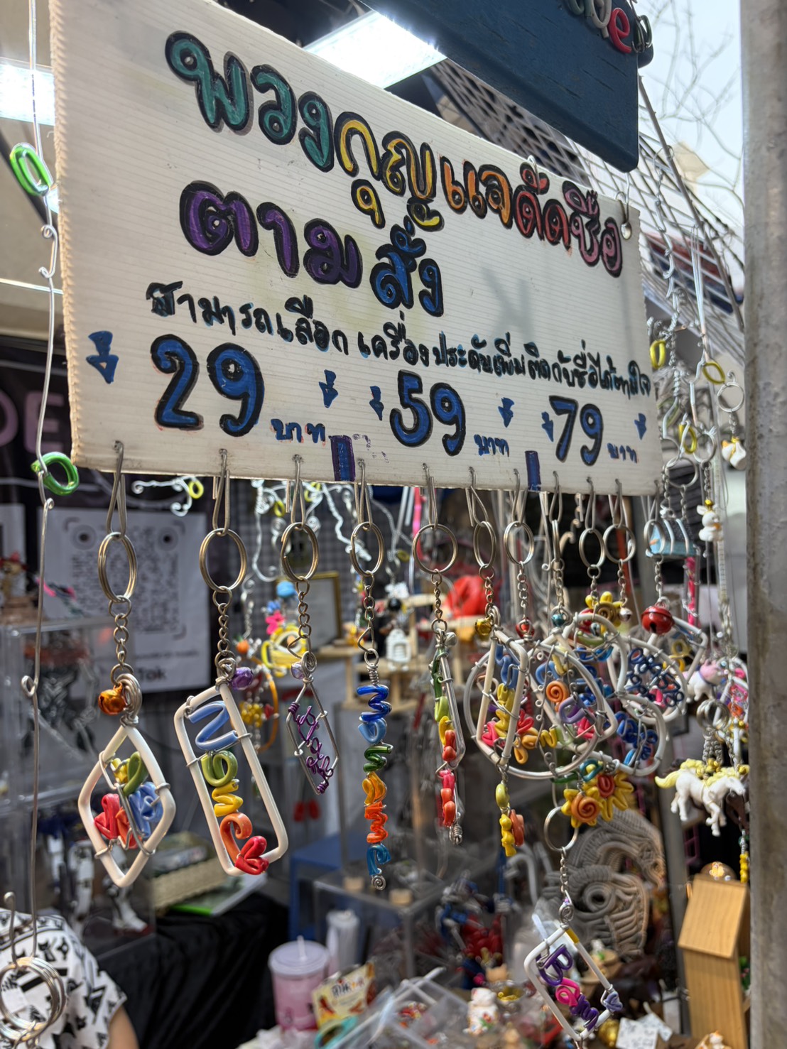 また、こんなタイ文字で名前のキーホルダーを作ってくれる屋台もあったり。